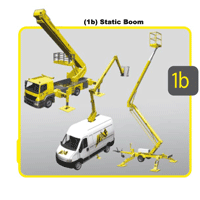 1b – Static Boom, covers truck, van mounted and trailer mounted Cherry Pickers. These all have outriggers so the machine base is “static” when in use.